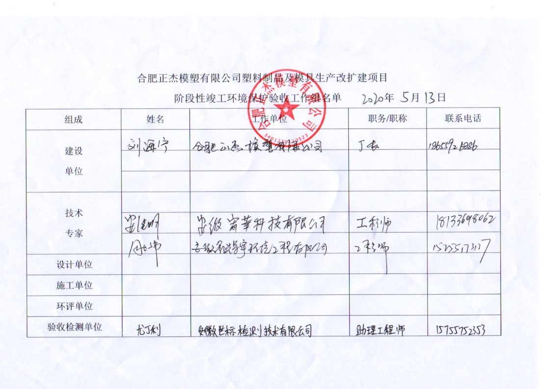 合肥正杰模塑有限公司塑料制品及模具生產改擴建項目階段性竣工環境保護驗收意見.pdf