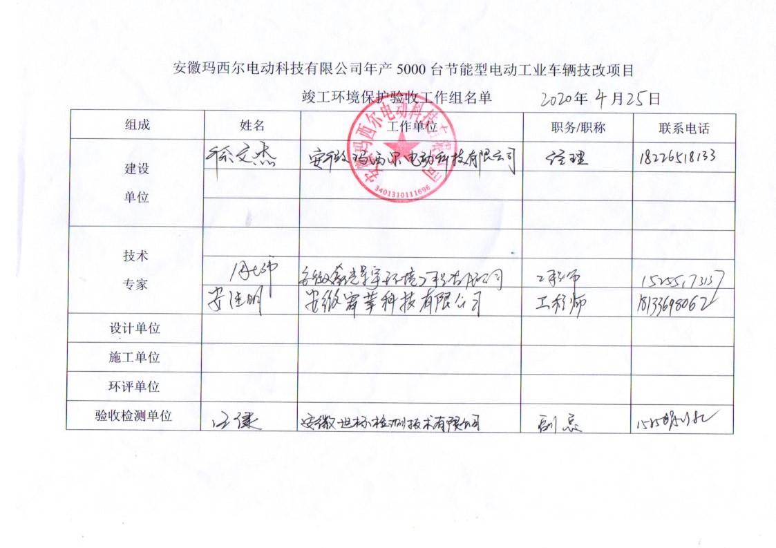 安徽瑪西爾電動科技有限公司年產5000臺節能型電動工業車輛技改項目竣工環境保護驗收報告公示