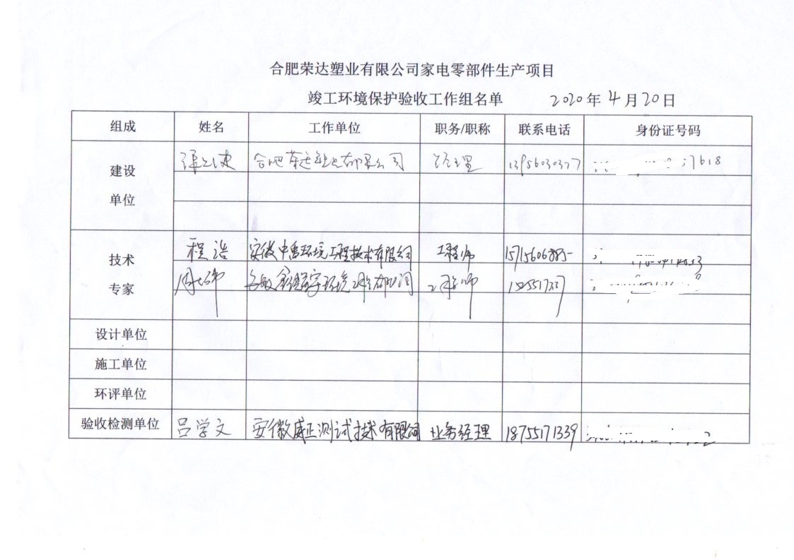 合肥榮達(dá)塑業(yè)有限公司家電零部件生產(chǎn)項目竣工環(huán)境保護(hù)驗收報告公示