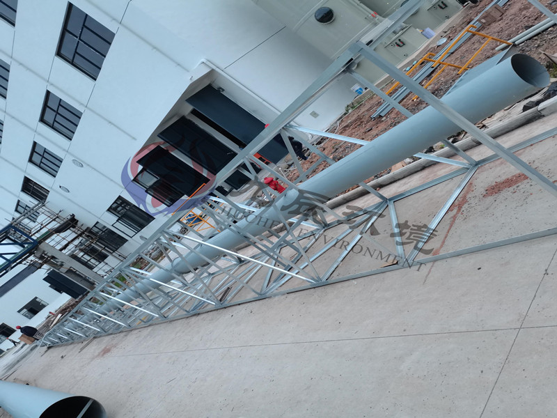 安慶中拓新材料科技有限公司是一家從事新材料領域相關產品的科技企業,該企業的原料車間會產生有機廢氣,旁邊的污水處理站會產生臭氣,設計兩套設備共用一個煙囪,相關設備于2021年7月25日發貨,7月26日進入安裝階段。