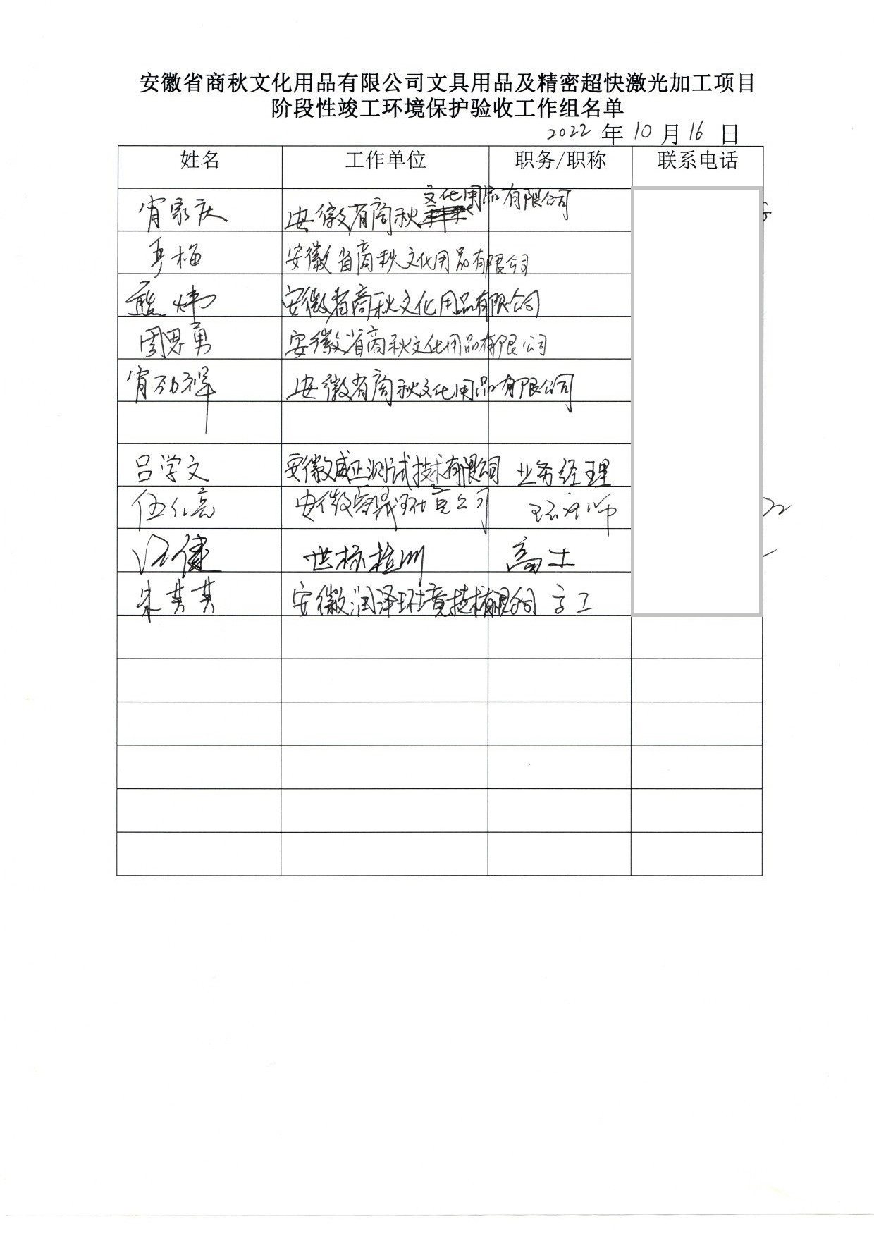 安徽省商秋文化用品有限公司文具用品及精密超快激光加工項目階段性竣工環(huán)境保護驗收報告公示