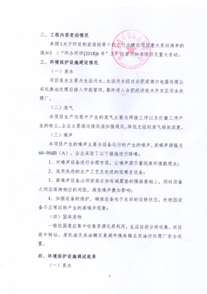 - 7 合肥海之森塑業有限公司年產1600萬件家電和汽車鈑金件及800萬件家電注塑件產品項目竣工環境保護驗收報告公示