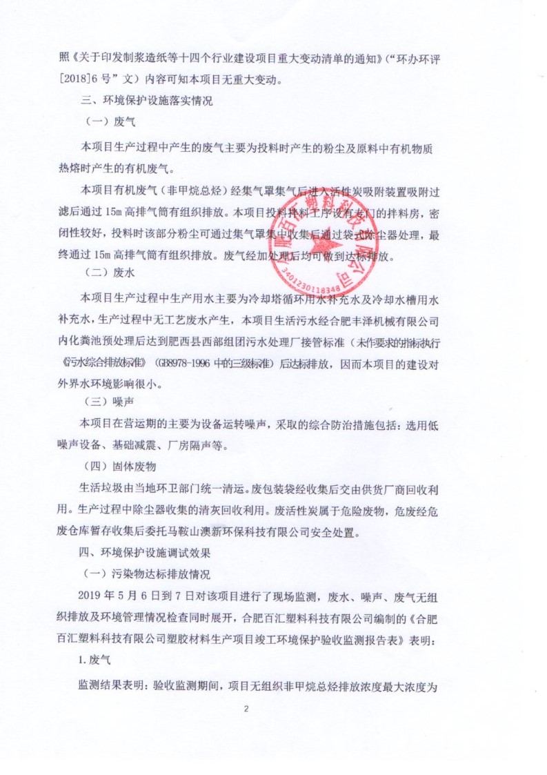 合肥百匯塑料科技有限公司塑膠材料生產(chǎn)項(xiàng)目竣工環(huán)境保護(hù)驗(yàn)收?qǐng)?bào)告公示